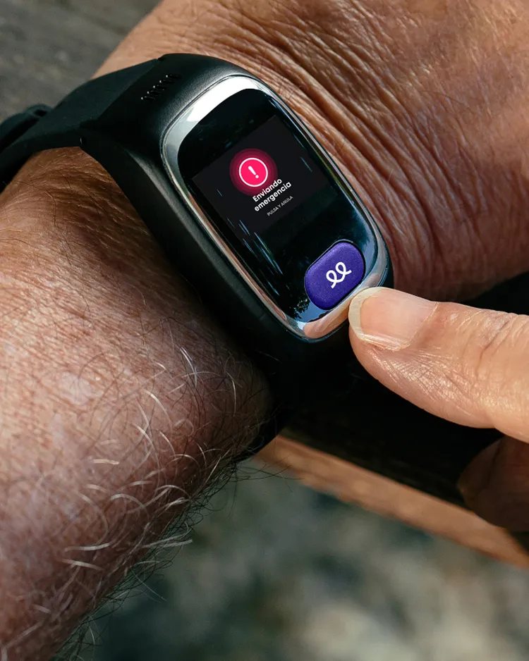 Presiona 3 s el botón de ayuda. Se envía tu ubicación a la central, te llamarán al reloj y, si procede, enviarán ambulancia, policía o bomberos.